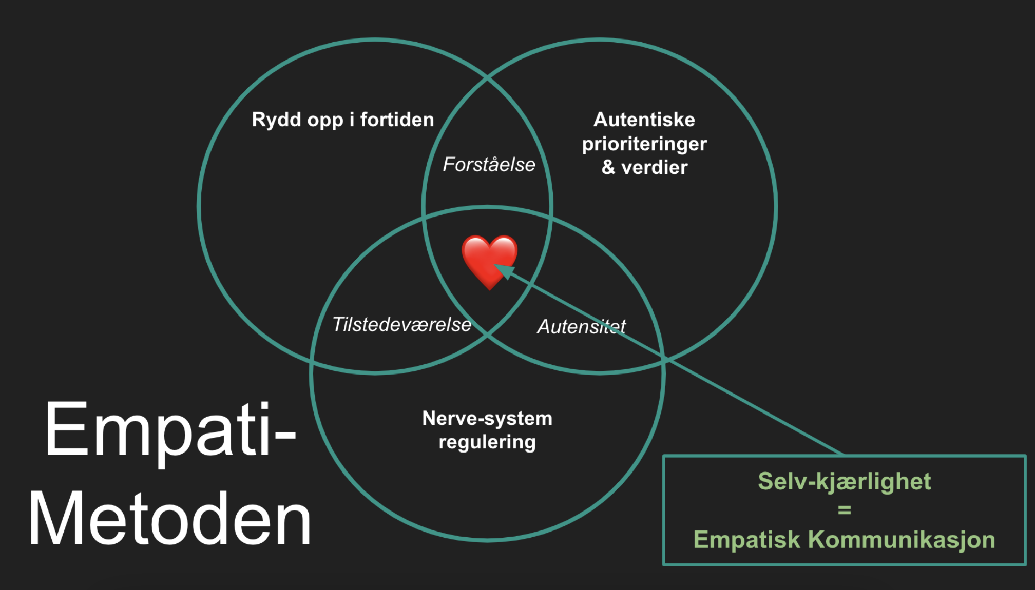 Dette er kilden til din indre drivkraft og inspirasjon, og dette er første steget i å bygge selv-kjærlighet og en indre robusthet. Dette er også fundamentet for å forstå menneskelig atferd og relasjonsdynamikker fordi alle valg vi noen gang tar kommer ifra hva som er våres autentiske verdier og prioriteringer. - Det kan virke som en heftig påstand, men jeg har vært nok runder med meg selv og fasilitert andre til å se at all atferd har en positiv intensjon, nemmelig å tilfredstille ens egne verdier og prioriteringer. Til og med destruktiv atferd, som overspising - som ofte er en respons til en mangel på tilfredstillelse i livet, eller for eksempel en kvinne som ikke har lært seg å takle oppmerksomhet fra menn, bruker da overvekten som en beskyttelse istedenfor å bruke kroppspråk og stemmen.